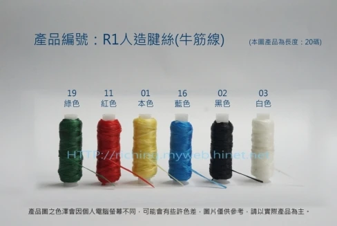 | 產品名稱:人造腱絲 (又名:牛筋線)(DIY手縫線與車縫腊線類) | ||||